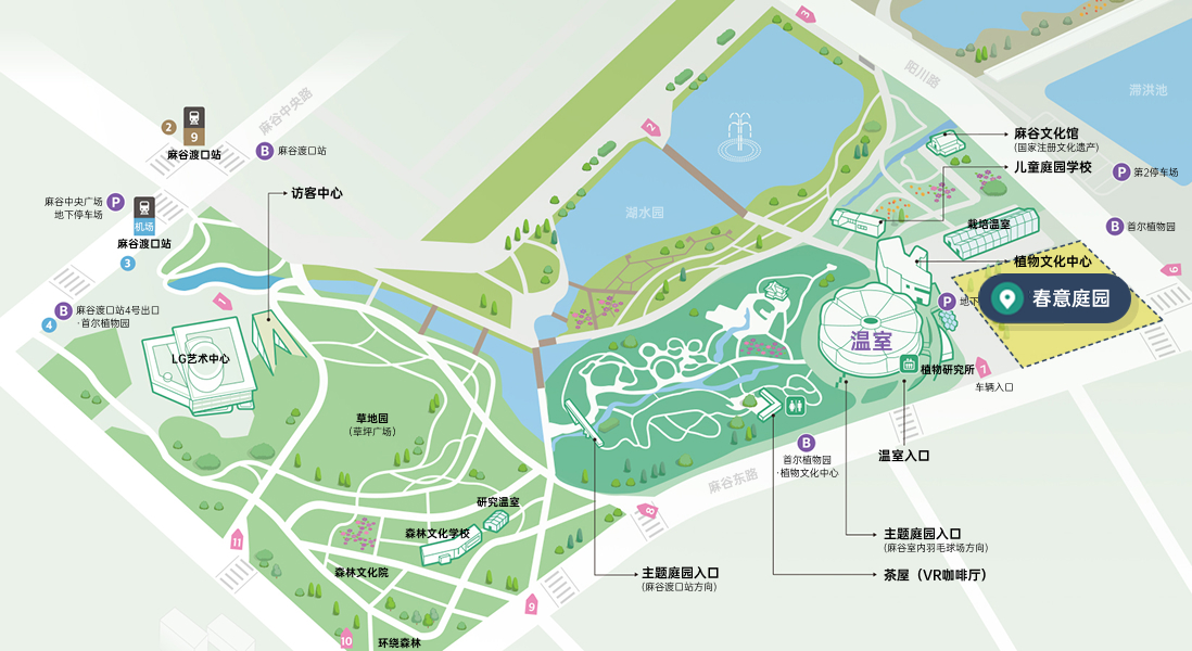 流转庭园展现四季流转轮回之景,高大玉兰树是森林庭园的报春使者,200余种宿草在草地庭园花开花谢循环往复,还有岩石庭园勾勒出明暗交错之美。