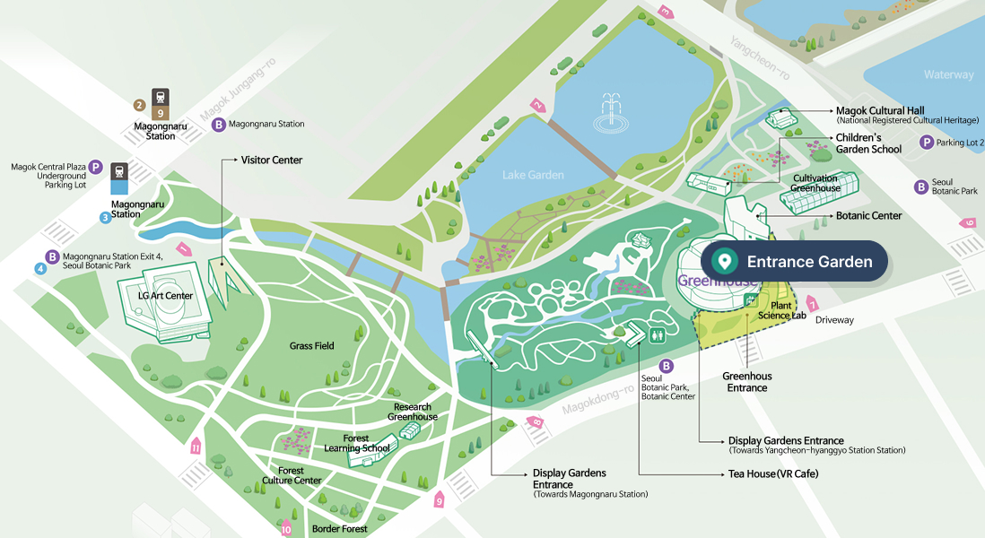 The “Flow Garden” is a long, winding garden that spirals along the Botanic Center and Plant Science Lab, serving as an accompanying path that naturally connects the main areas of Seoul Botanic Park.