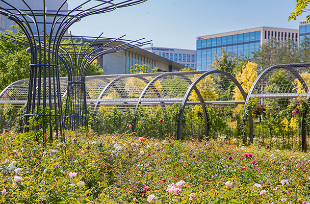 밝은 햇살이 당신을 환영하는 이곳은 열린숲 햇살정원, 각양각색의 장미와 등나무 터널을 통해 산책해보세요.