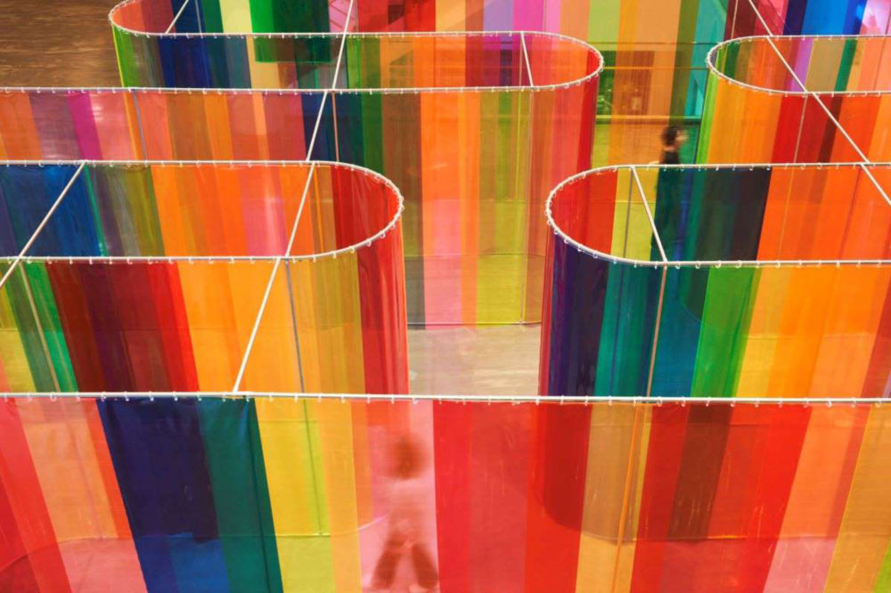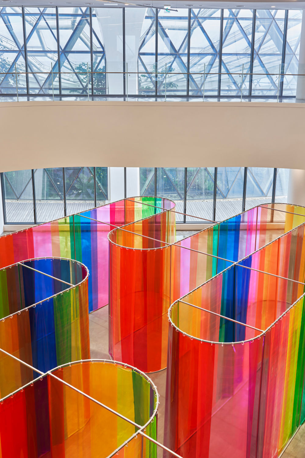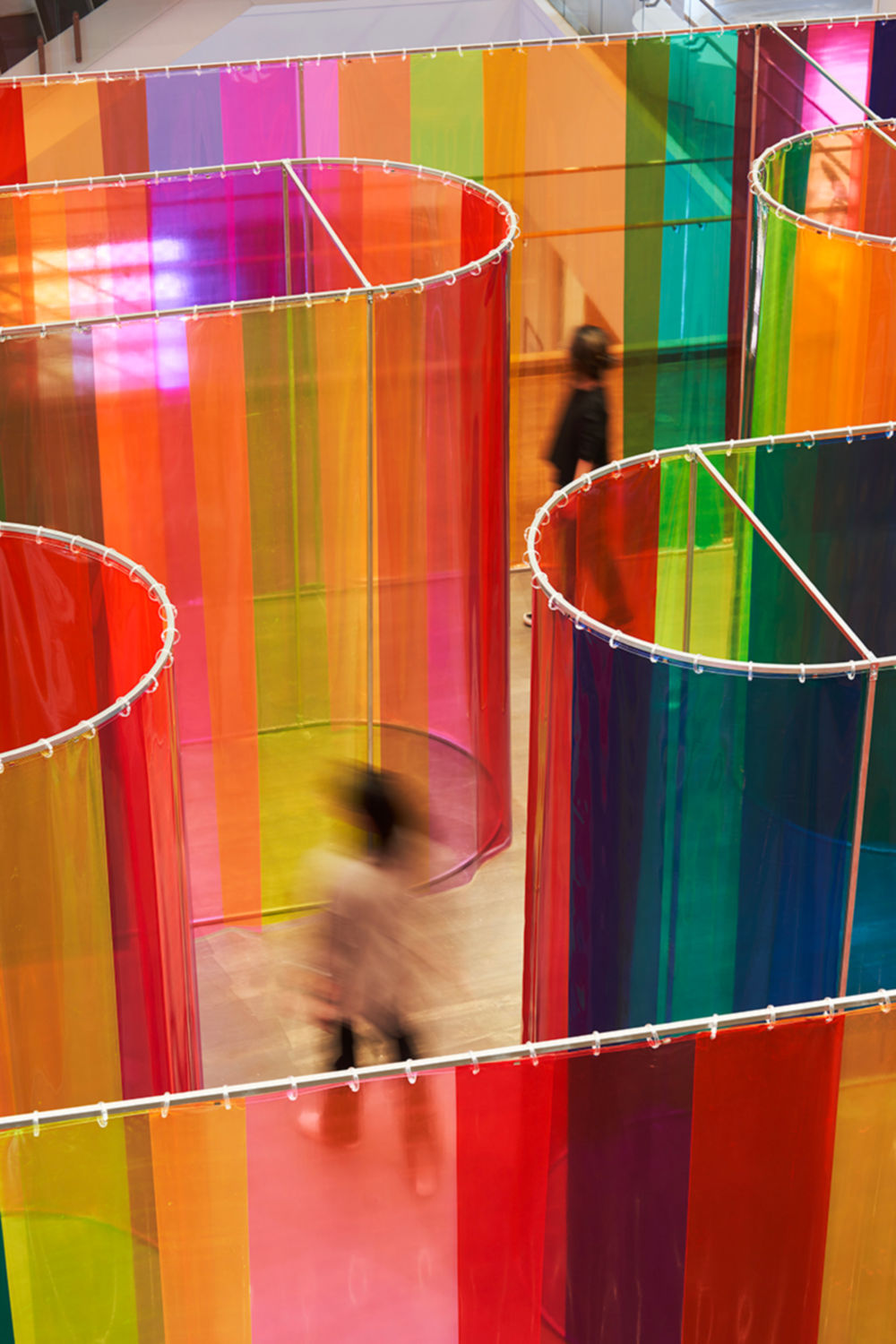 겹쳐지면서 수많은 빛과 색의 스펙트럼을 보여주는 공간설치 작품은 내부로