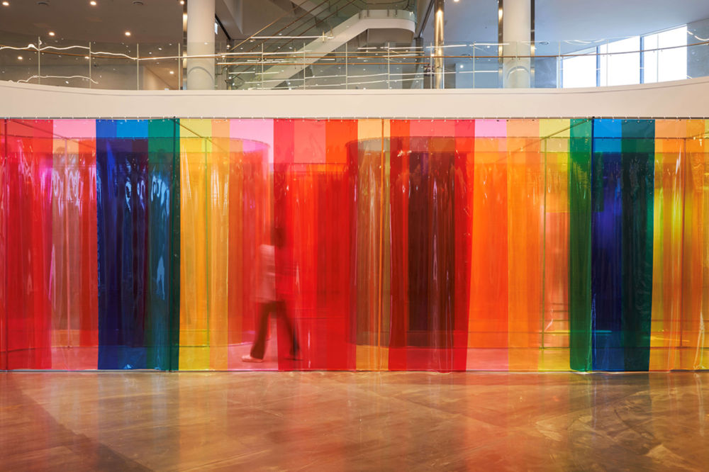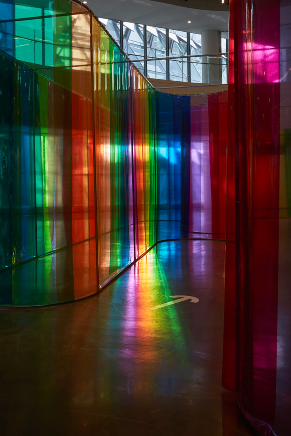 <천변만화 : 무지갯빛 풍경> 2023, 투명 컬러 PVC 필름, 7.5×15×3m