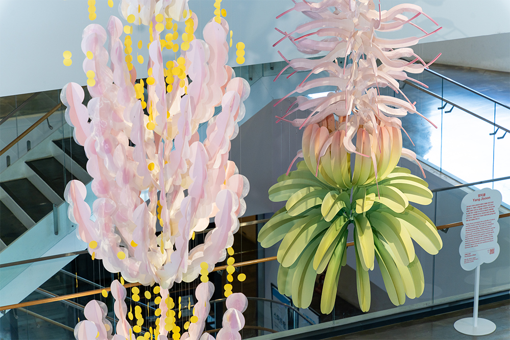 Seoul Botanic Park has organized varying genres of contemporary art exhibitions to reflect upon botanical culture and promote ecological awareness. In our 2025 special exhibition, Our Nature, Planetary Coexistence, we aimed to present novel perspectives and viewpoints on nature. Specifically, this exhibition aspired to present a singular “we” within the planet we inhabit, Earth, without drawing lines between life and non-life, or human and non-human, and to view nature not as the other but as the entity that constitutes the world. The theme of Our Nature, Planetary Coexistence was inspired by “hyperobjects,” a concept proposed by the English scholar and ecological theorist Timothy Morton. Instead of classifying things through the dichotomy of nature vs. non-nature, Morton’s ecological perspective proposes that we view the world as a compound entity intertwined into an ensemble and perceive the entire universe as a large relational mesh. Our Nature, Planetary Coexistence features Kim Joohyun, Yang Jiyoon, Chang Hanna, and Choi Sungim: artists who contemplate and experiment with the relationships nature, ecology, and art can have with one another. As for the venue, the exhibition spans four locations that each have distinct spatial characteristics — a lobby-type exhibition hall, a greenhouse, an outdoor garden, and a state-designated cultural heritage building — and in each of these locations, the artists endeavored to contrive spaces where art and nature coexist. Our Nature, Planetary Coexistence wishes to knock down the wall separating natural and artificial entities and to remind ourselves that we are all ecological beings interconnected on a single planet. We hope this exhibition encourages you to pause and reflect on our condition of interconnectedness.