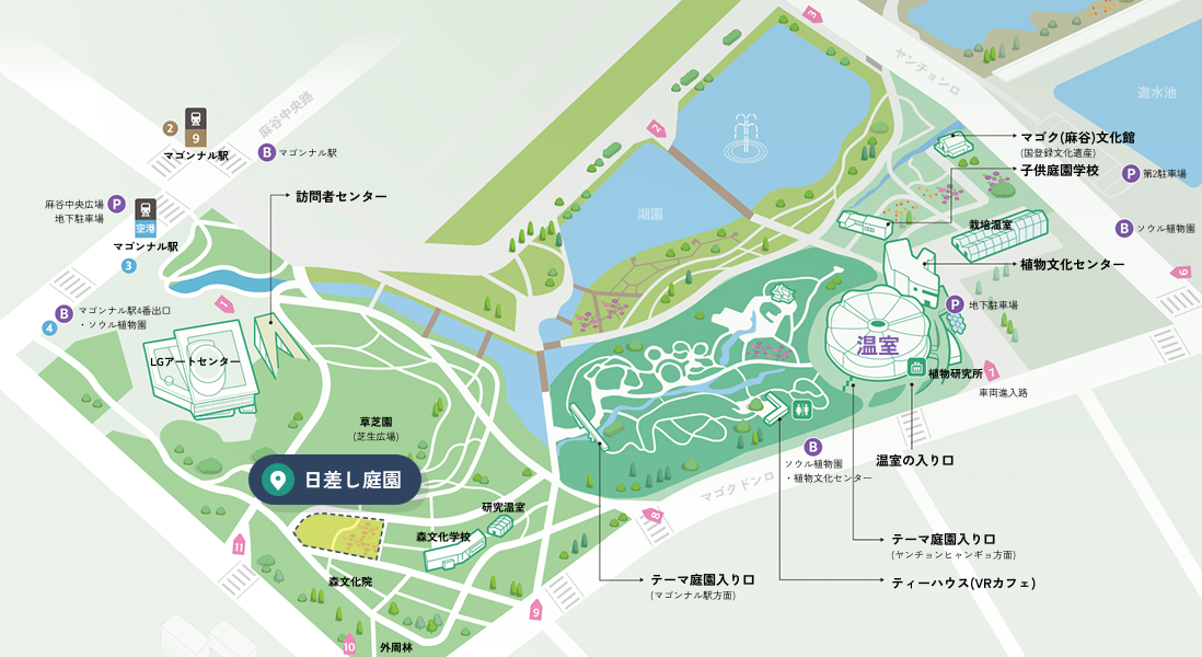 明るい日差しがあなたを歓迎する開かれた森の「日差し庭園」、色とりどりのバラの花を眺めたり、藤のトンネルをくぐったり、楽しく散歩しましょう。